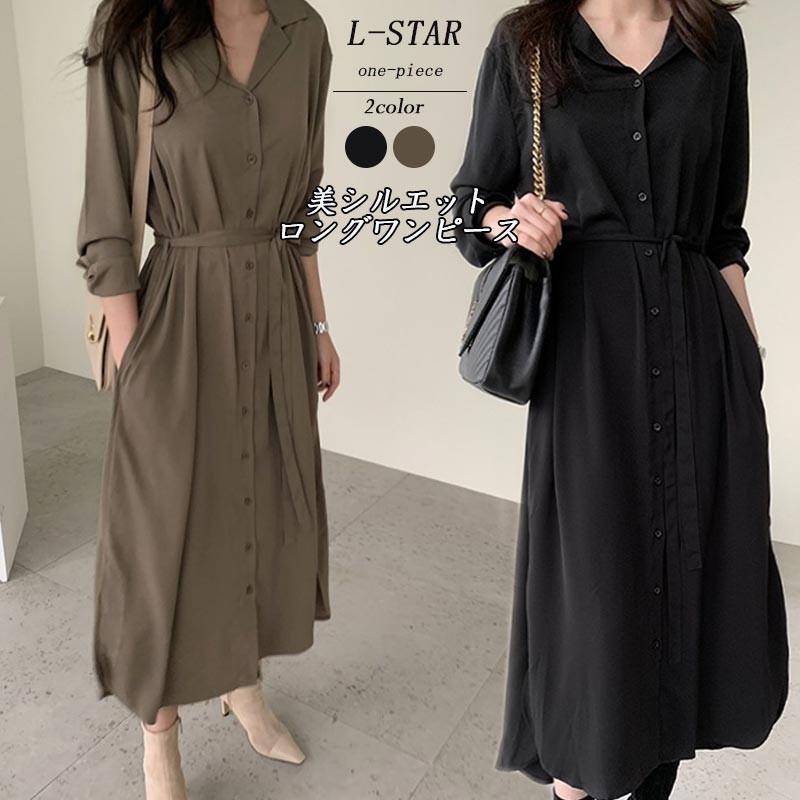 ロングワンピース シャツワンピース 秋冬 ボタンワンピース ロング丈 vネック レディース 羽織り 大人カジュアル ガウン ベルト付き シンプルコーデ Jdt0061 Kirakirashop By Kg Market 通販 Yahoo ショッピング